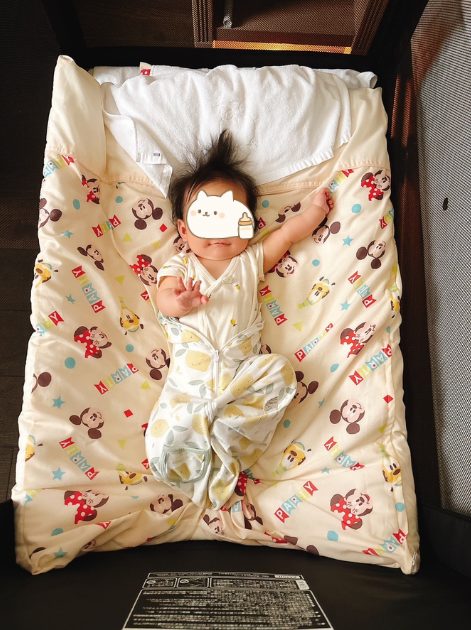 事前に予約すると、お部屋にベビーベッドとおむつ用ゴミ箱を用意してくれました。