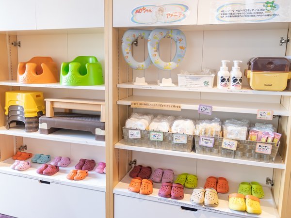 まず驚いたのが、1階にずらりと並ぶ赤ちゃん用アメニティの豊富さ。
